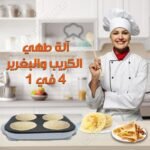 4 مقالي في واحد لطهي وطبخ جميع انواع الفطائر بسرعة فائقة وبكمية كبيرة مثل البغرير، الكريپ، الحرشة، البطبوط، الپان كيك وحتى الأومليط تخلصي من عناء كثرة الأواني مع هذه المقلاة الرائعة، ستساعدك المقلاة في تحضير وجبات عديدة في وقت وجيز، يمكنك طهي أي نوع من الطعام دون الحاجة إلى إستخدام الزيت أو الدهون.