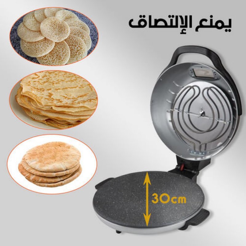 يحتوي على سطح بقطر 30سم يمنع التصاق الأطعمة كالبغرير والكريب مما يوفر لك طعام بنكهة لذيذ ويوفر عنك عناء التنظيف.
