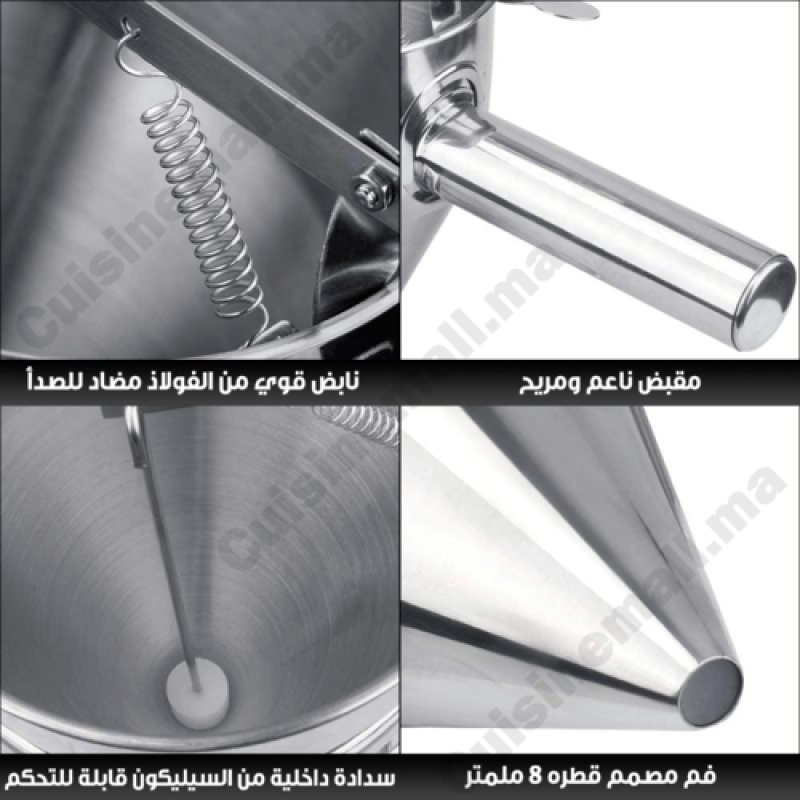 يُمكنك توفير الكثير من الوقت والمجهود في مطبخك بفضل هذه الآلة التي تسمح بتفريغ وتوزيع العجين بشكل ٱحترافي ورائع. يمكن ٱستعمالها لتحضير العديد من الوصفات مثل البغرير، الكيك، البانكيك، وتزيين الحلويات والمثلجات…