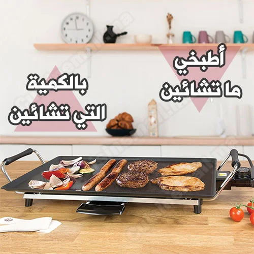 بفضل سطحها الكبير ذو الشكل المستطيل ستمكنك هذه الآلة من طهي كمية كبيرة من الفطائر، كالمسمن والبغرير وشواء اللحم والكفتة والنقانق في نفس الوقت وفي وقت قياسي عكس المقلاة العادية التي تتسع لقطعة واحدة فقط. مناسبة لعيد الأضحى القادم.