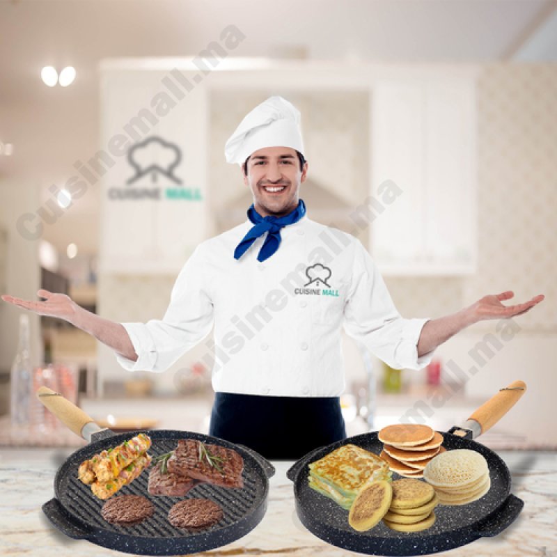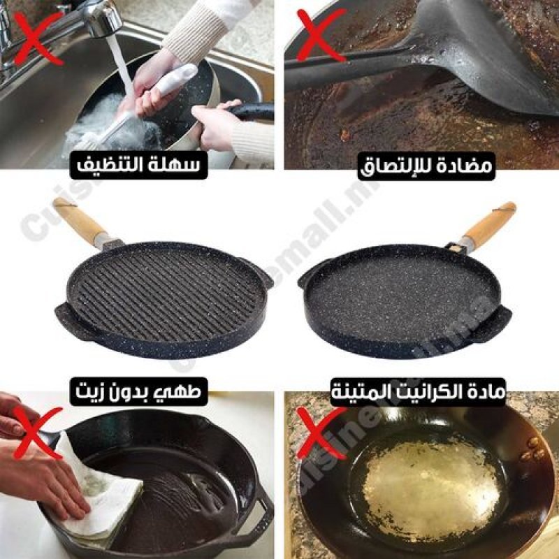 مقلاة ذو جودة عالية، بوجهين واحد أملس وواحد مخطط، متعددة الاستخدامات ومناسبة لطهي جميع الوصفات الخاصة بشهر رمضان المبارك.