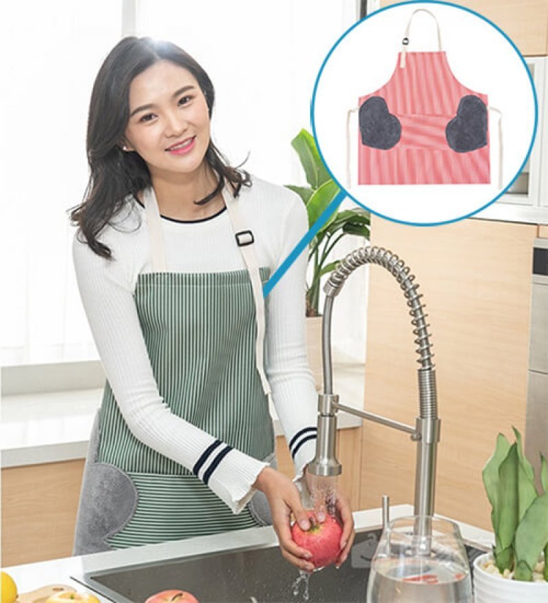 عكس المرايل التقليدية، فهذه المريلة تتوفر على ثوب على الجانبين ليسهل عليك تنشيف يديك و استعمال الهاتف براحة تامة.
