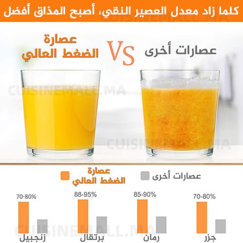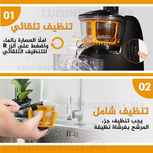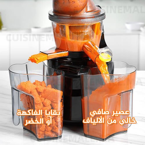 بفضل هذه العصارة يمكنك الحصول عصائر غنية بالعناصر الغذائية ومركزة و بدون ألياف واللب الذي يسبب الإنتفاخ و مشاكل الهضم و حرقة المعدة، ويمكنك الشعور بالطعم والمذاق المميز سواء للفواكه و الخضار .